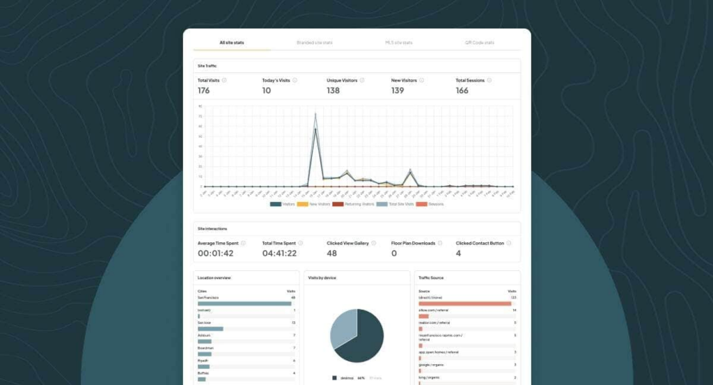 Powered by Google, our analytics interface provides hyper-accurate visitor data. Monitor visits, interactions, referral sources, and more—all in one convenient dashboard. For agents who want to dive even deeper, we also offer integration with Google Tag Manager, allowing you to customize tracking, set up conversion funnels, and analyze user journeys with precision.